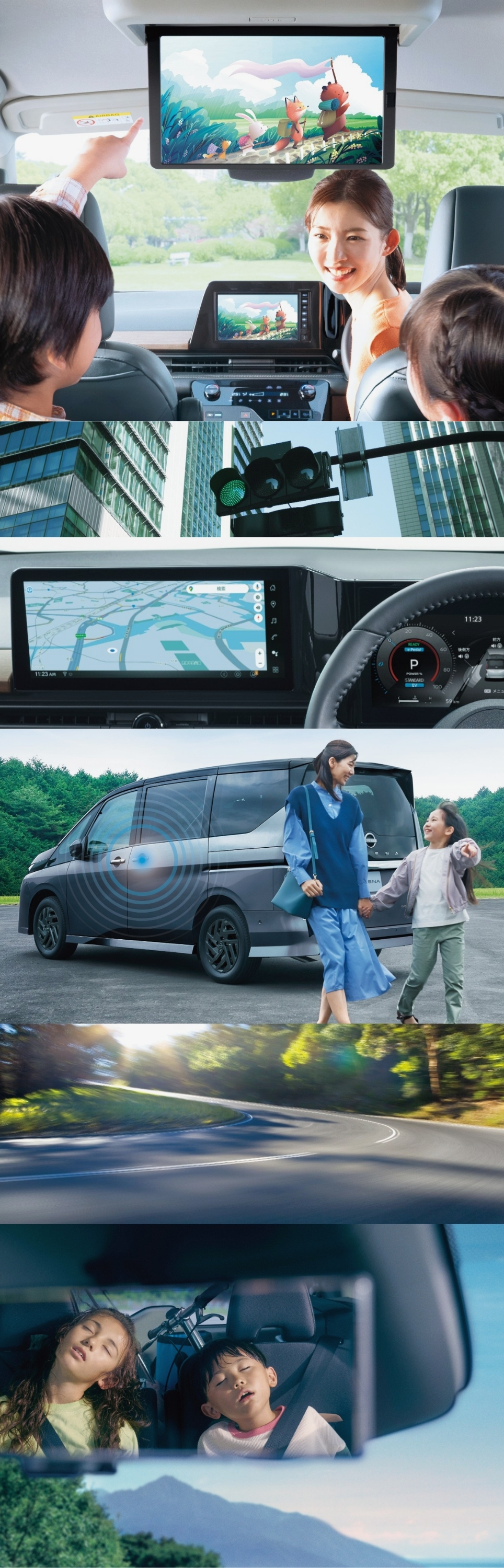 Google搭載のNissanConnectインフォテインメントシステムや、後席専用モニターの大型化など、家族のうれしいと楽しいが広がる装備がたくさんです。